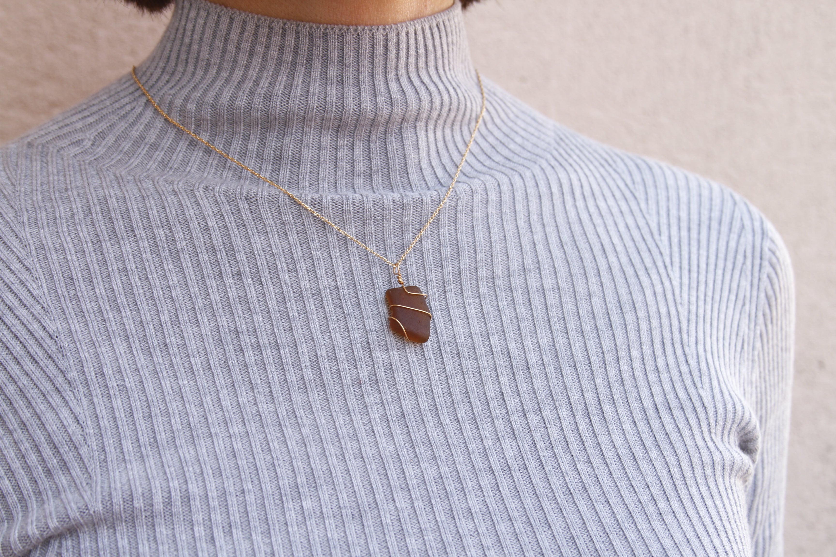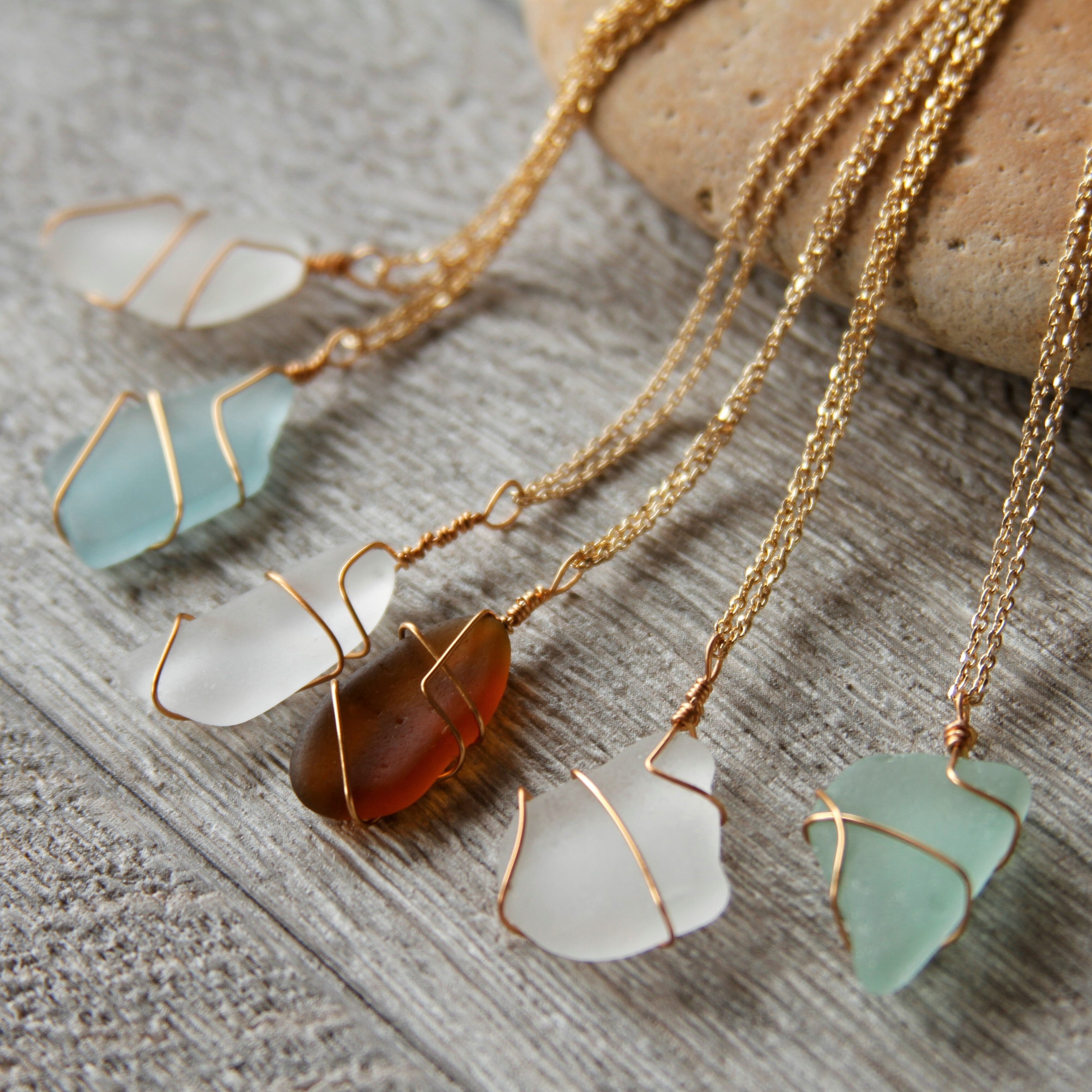 シーグラスをワイヤーで巻いて、女性らしく繊細な印象に。